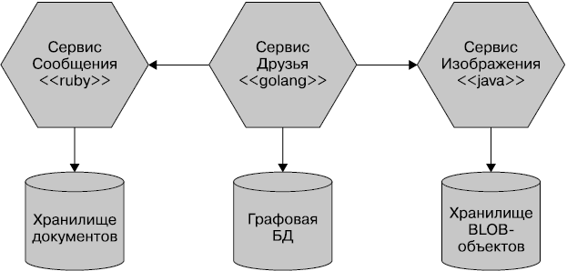 Пока мы говорим о скрытии деталей внутренней реализации, с моей стороны было бы упущением не упомянуть шаблон гексагональной архитектуры, впервые подробно описанный Алистером Кокберном2. Этот шаблон определяет важность сохранения внутренней реализации отдельно от ее внешних интерфейсов, поскольку вы, возможно, захотите взаимодействовать с одной и той же функциональностью через разные типы интерфейсов. Я изображаю свои микросервисы в виде шестиугольников (гексагонов) отчасти для того, чтобы отличить их от «обычных» сервисов, но также по причине моей любви к этим фигурам.