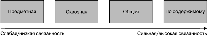 Рис. 2.1. Различные типы связанностей, от слабых (низких) до сильных (высоких)