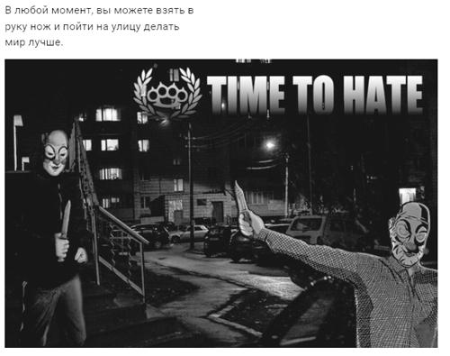 Многие деструктивные сообщества тоже не отличаются идеологической строгостью: например, в сообществе «Time to hate (Время ненавидеть)» (рис. 1, 2, 3) перемежаются посты пробандеровцев, «неоязычников», приверженцев запрещенной в Российской Федерации организации «Имарат Кавказ», истории о серийных убийствах и т. д.91