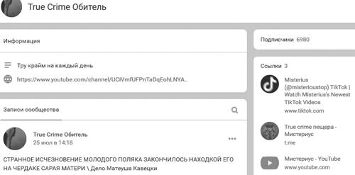 Рис. 11. Скриншот публикации в группе «True Crime Обитель» в социальной сети «ВКонтакте» (www.vk.com)