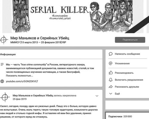 Рис. 10. Скриншот публикации в группе «True Crime Community 18+» в социальной сети «ВКонтакте» (www.vk.com)