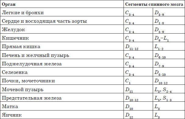 Таблица 1.1.Соответствие сегмента внутренним органам