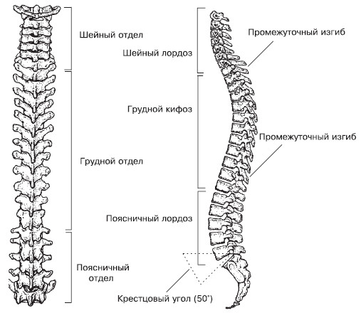 Рис. 1.1. Позвоночник (вид сзади и сбоку)[2]