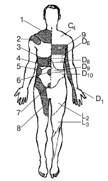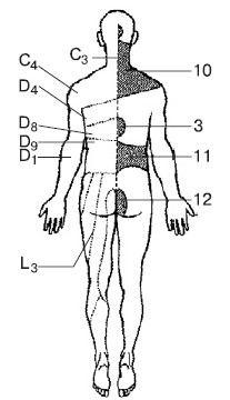Прежде чем приступить к изучению массажных приемов и применению их на практике, нам необходимо вспомнить о сегментарном строении человека, проще говоря, о том, за какой участок тела отвечает определенный спинномозговой нерв.
