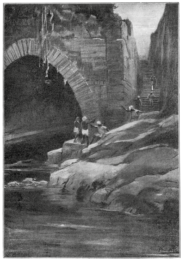С помощью маратхи он перебросил лестницу через мутную реку. Первыми на ту сторону перебежали мастифы. Убедившись в крепости бамбука, за ними двинулись люди. Вскоре отряд оказался на другом берегу.
