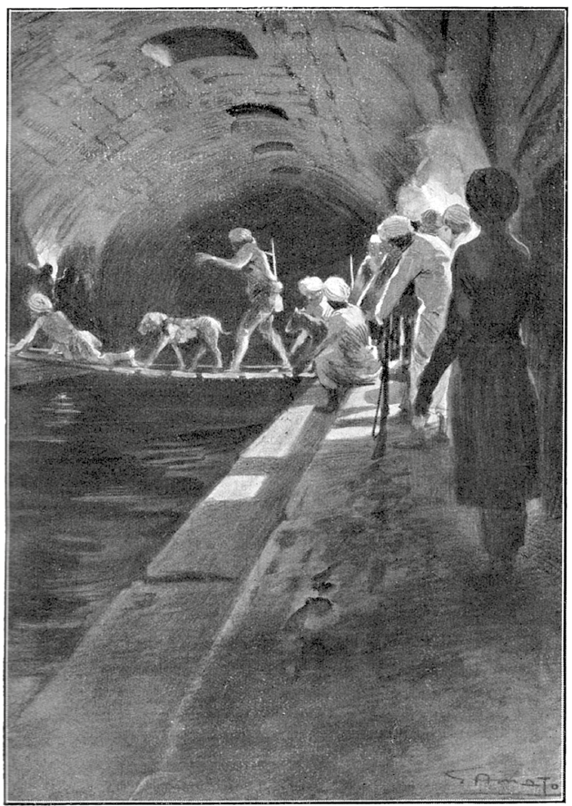 Тремаль-Наик, рискуя получить пулю (а всем уже было ясно, что таинственные обитатели клоак вооружены), приблизился к потоку, приподнял повыше лампу и воскликнул: