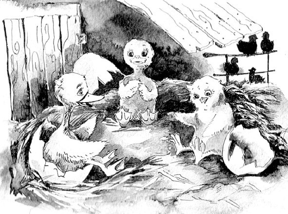 Всё началось весной. В обычном деревенском сарайчике, который находился во дворе усадьбы. В этом сарайчике вылупились почти в одно время: цыплёнок, утёнок и гусёнок.