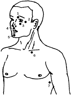 Точка 4 – над верхней губой.