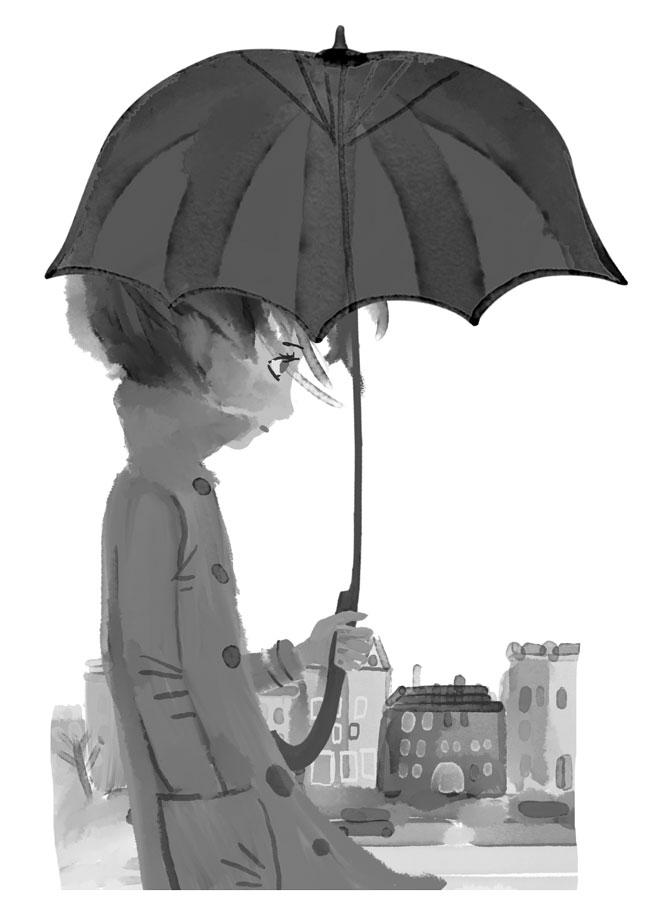 Октябрь — это ее время. Тучи, серое небо, все еще желтые листья! Скоро они побуреют, сольются с грязным тротуаром. Дождь стучит по зонту, заглушая уличные шумы. А внутри, под зонтом, — тишина! Такой тишины не бывает даже в пустой квартире. Там обязательно что-то звякает за окном или бормочет за стенкой у соседей.