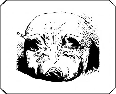 Свиней режут так же, как и телят, с тою только разницей, что горло им перерезывают вдоль, а не поперек, так как иначе пришлось бы резать толстую шею свиньи и тратить напрасно силу. Когда свинью выводят к чану, она неистово верещит: соседки ее, выражая свое сочувствие, тоже начинают верещать, и на бойне поднимается такой пронзительный крик, что нет возможности разговаривать. Для сокращения времени рабочие подводят свиней целыми вереницами, по очереди, одну за другой. Лишь только боец заколет одну свинью, ему тотчас подставляют другую, третью и т. д. С перерезанным горлом свинью бросают на пол, в общую кучу, где мало-помалу и прекращается агония смерти. Затем свинью опускают в огромный чан с горячею водою, куда проведены пары. Ошпаривши, ее вынимают из кипятка и кладут на стол, где с нее сдирают щетину, затем обделывают начисто и обливают водою.