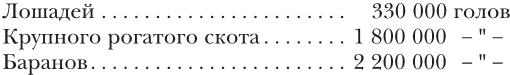 На громадных пространствах Киргизских и Калмыцких степей – в областях Уральской, Тургайской, Акмолинской, Семипалатинской и по системе р. Маныча – еще более простора для развития скотоводства.
