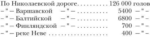 В снабжении столицы убойным скотом принимают участие следующие железные линии: Николаевская[4], Варшавская, Балтийская и Финляндская.