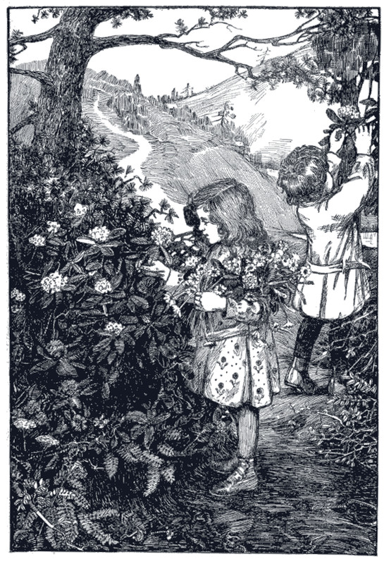 “Oh, no. The snow mountains are far away over the sea. But these are English mountains, kind, easy mountains, not too high for you and me to climb up, and covered all over with soft green grass and wild flowers, and tiny sheep with black faces.”