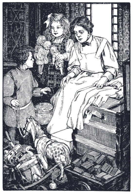 “You can’t, Olly,” exclaimed Milly. “Nurse could never pack all those up. There’d be no room for our clothes. You can take your whistle, and the top, and the picture books, and I can take my dolls. That’ll be quite enough, won’t it, mother?”