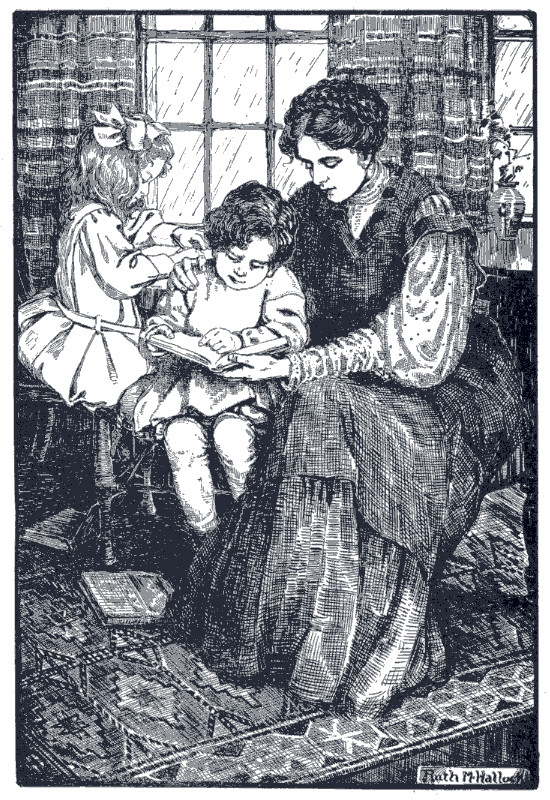 Down squatted the children on the floor opposite their mother, with their little heads full of plans and their eyes as bright as sparks.