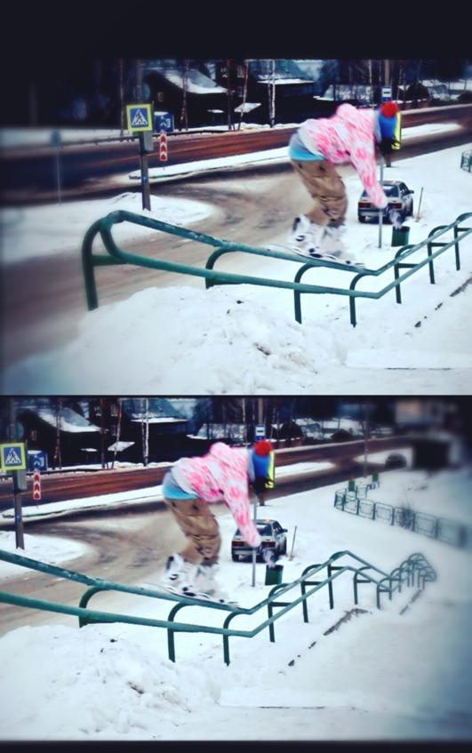 А дело было так. Я приехала из той первой поездки в Геш, и почти сразу пришла в Бобровый лог. Там стояли рейлы, и я уже была готова к тому, чтобы учиться по-нормальному джибить. В Бобровом всегда была флэйва. Тогда, в феврале 2011 года, это были: Кузин, Антон, Рэпчик, Герасименко и несколько человек, которые иногда приходили и уходили.