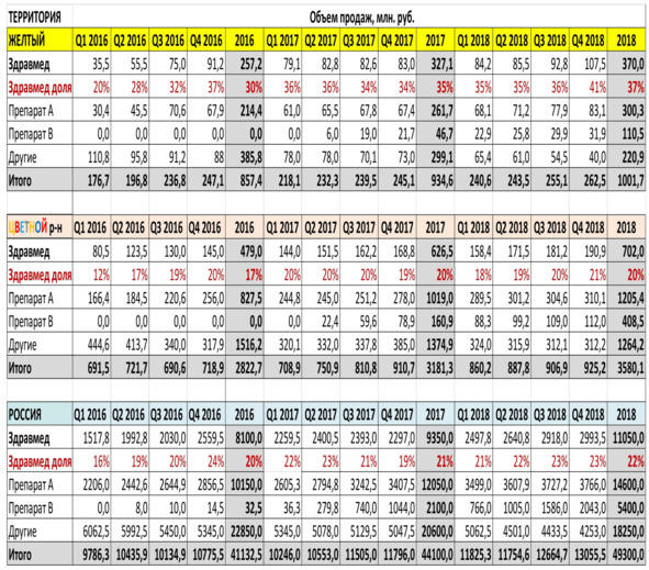 Другая ситуация — план не соответствует возможностям территории: доля препарата очень большая, темпы роста релевантного рынка низкие. В таких случаях значительный рост продаж скорее всего будет связан с достаточно большими ресурсами, которых у компании в настоящий момент может не быть.