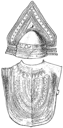 Рис. 4. Виллановианский шлем с гребнем и бронзовые латы. Музей Пенсильванского университета, Филадельфия.