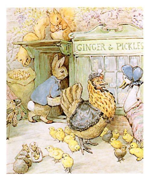 The counter inside was a convenient height for rabbits. Ginger and Pickles sold red spotty pocket-handkerchiefs at a penny three farthings.