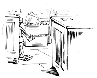 After a time they heard a noise in the shop, as if something had been pushed in at the door. They came out of the back parlour. There was an envelope lying on the counter, and a policeman writing in a note-book!