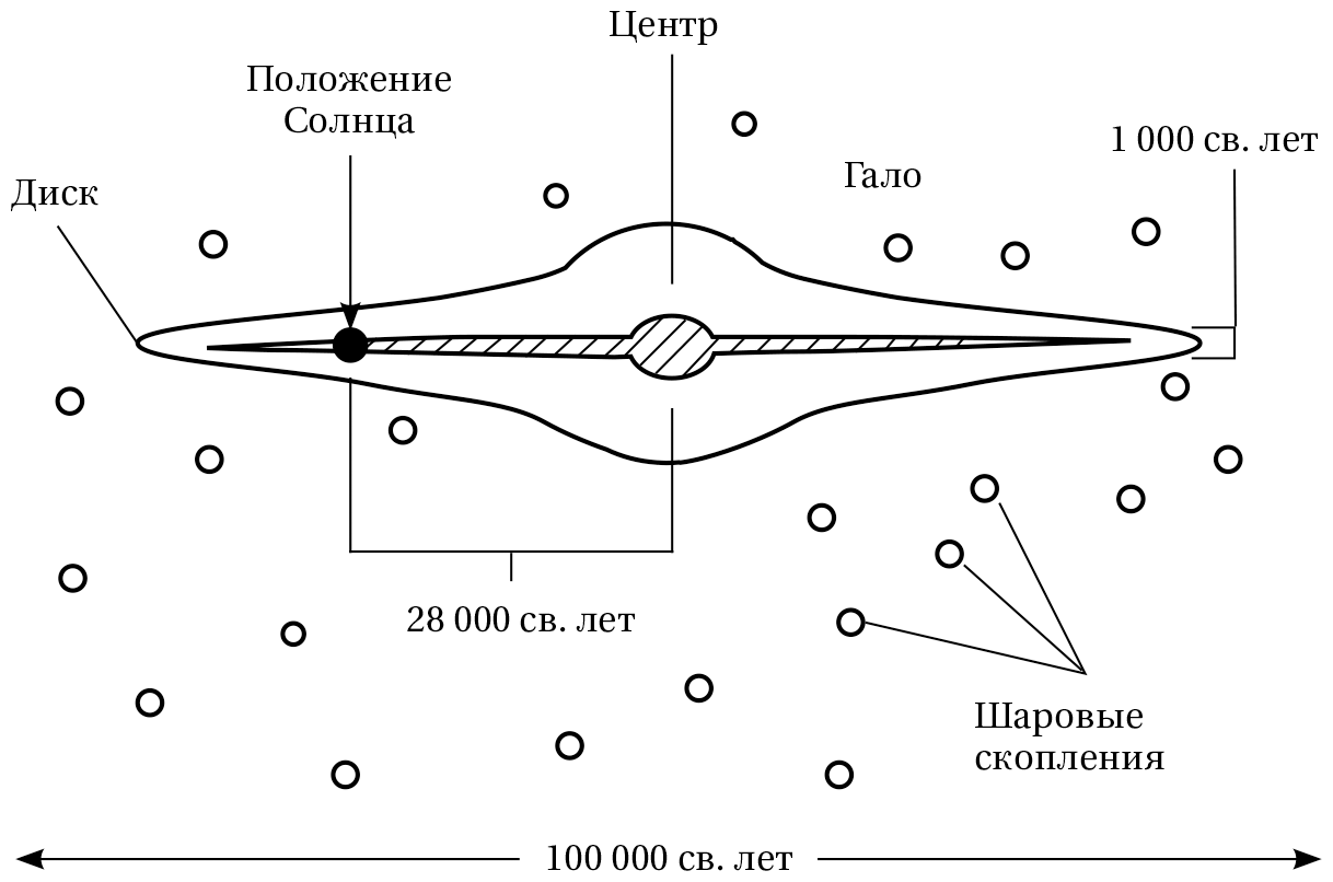 Галактика – это скопление звезд вокруг единого гравитационного центра. Чем ближе к центру, тем больше плотность звездного вещества, другими словами, звезды располагаются ближе (рис. 1).