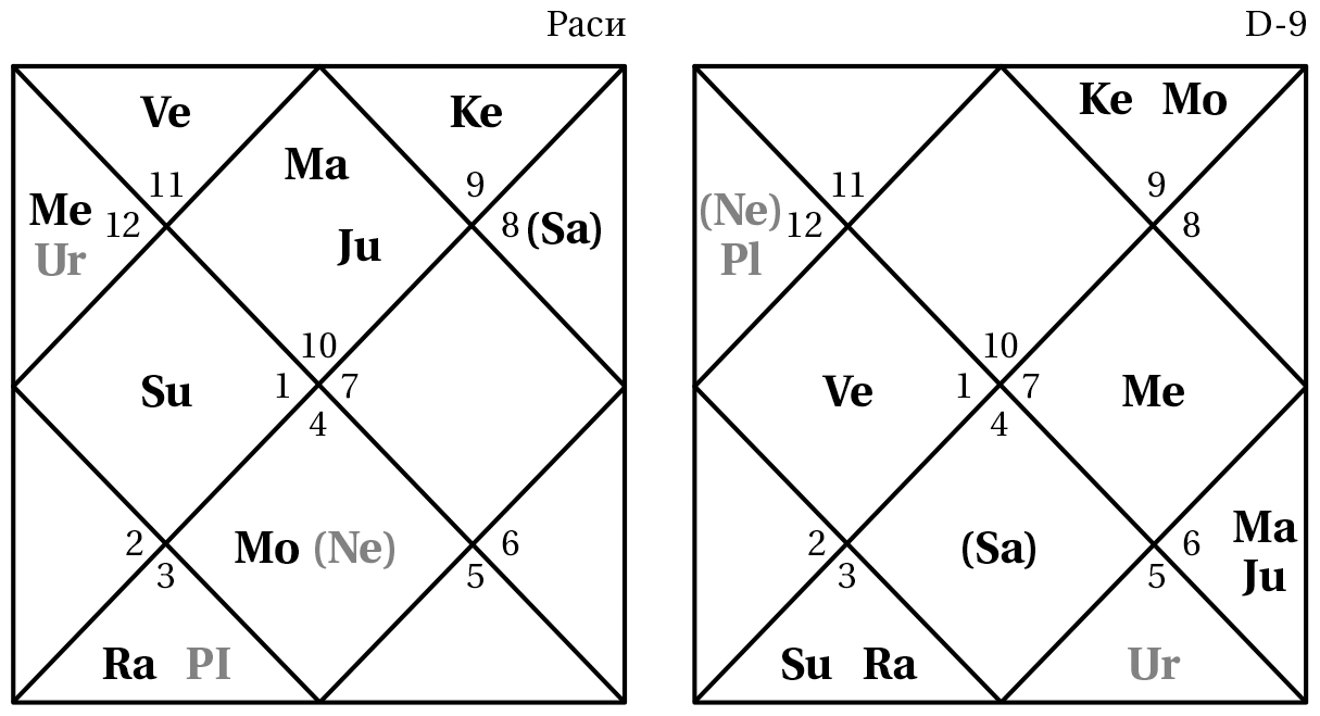 Все примеры построены в традициях Джйотиш с использованием сидерического зодиака и североиндийского стиля построения карты.
