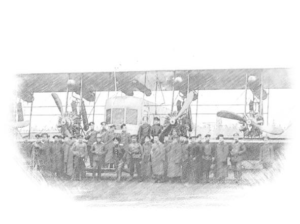 …Борис, призванный в авиацию пилотом аэроплана, ехал на поезде в Питер вслед за Серафимом, но им не суждено было пересечься. Он не дождался рождения ребёнка, который вот-вот должен был появиться на свет. Его определили в лётный отряд в районе Галиции. Уже на третий день пребывания он участвовал в разведке и аэрофотосъёмке в составе звена под командованием капитана Скопинцева. Пётр Сергеевич облетал машины ещё во Франции и прекрасно пользовался их техническими возможностями. Авиаотряд насчитывал пять звеньев аэропланов и один дирижабль. Летали на французских «Ньюпорах» и «Фарманах». В конце года в часть стали поступать бипланы И. И. Сикорского «Илья Муромец», и вскоре по инициативе Шидловского была создана Эскадра Воздушных кораблей, положившая началу образования Дальней авиации. Экипаж машины состоял из шести офицеров, при чём штурман тоже носил офицерское звание. Командиром самолёта мог быть чин не ниже капитана, но уже опытному Борису Щаплеевскому доверили одну из машин. Он одним своим видом подходил под стать «Илье Муромцу».