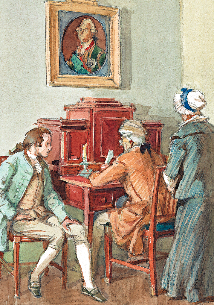 Батюшка не любил ни переменять свои намерения, ни откладывать их исполнение. День отъезду моему был назначен. Накануне батюшка объявил, что намерен писать со мною к будущему моему начальнику, и потребовал пера и бумаги.