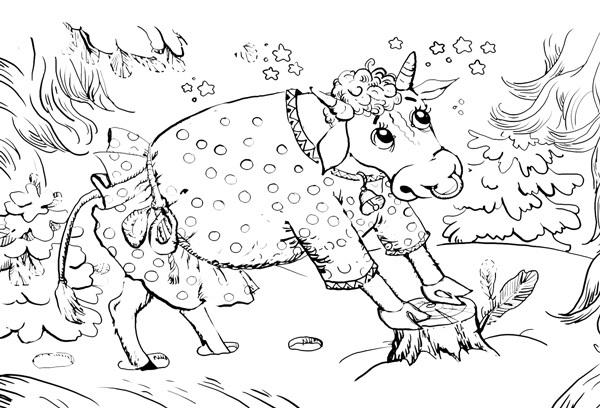 Ладно, пошёл медведь; только что в двери – бык наклонил голову и припёр его рогами к стенке. А баран разбежался, да как бацнет медведя в бок и сшиб его с ног. А свинья рвёт и мечет в клочья.