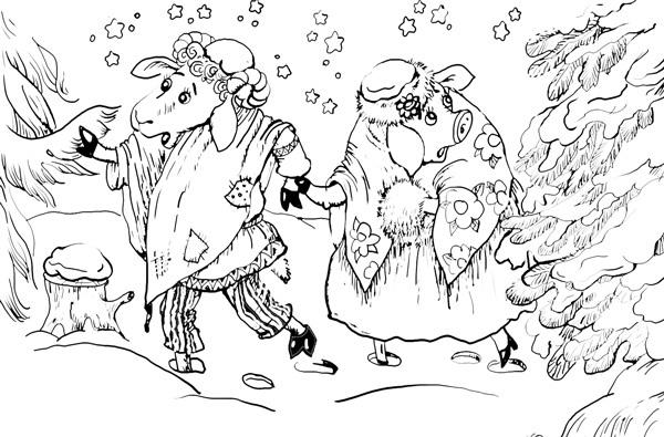– Хорошо, кумушка! – говорят медведь и волк. – Мы твоих услуг никогда не забудем. Пойдём же приколем да поедим!
