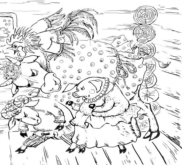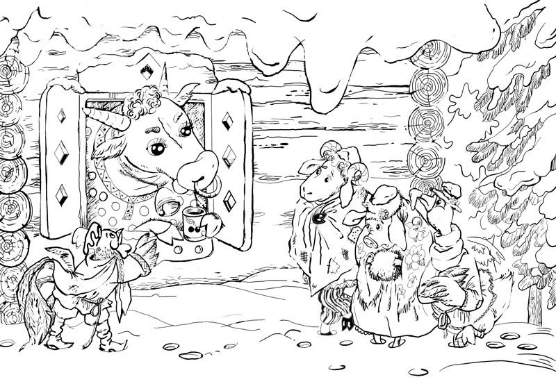 – Ну, любезные куманьки! Я нашла для всех поживу: для тебя, медведь, – быка, для тебя, волк, – барана, а для себя – петуха.