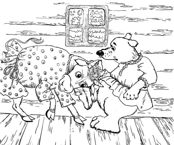 Лиса привела их к избушке. Медведь говорит волку: