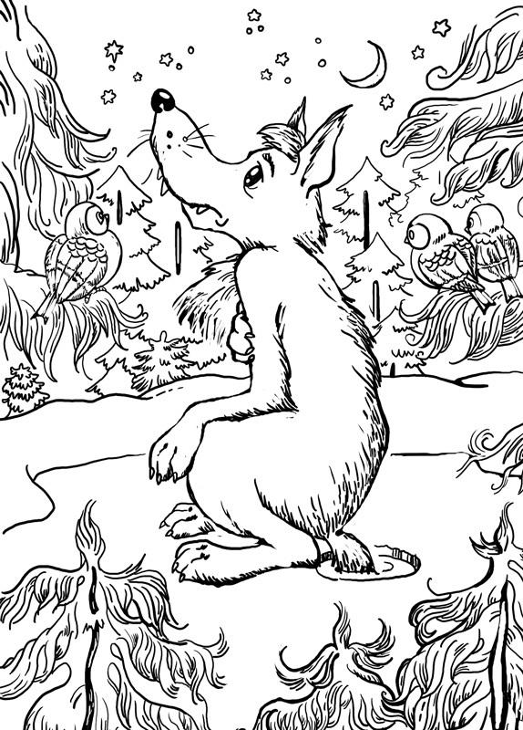 Волк пошёл на реку, опустил хвост в прорубь; дело-то было зимою. Уж он сидел, сидел, целую ночь просидел, хвост его и приморозило. Попробовал было приподняться: не тут-то было.