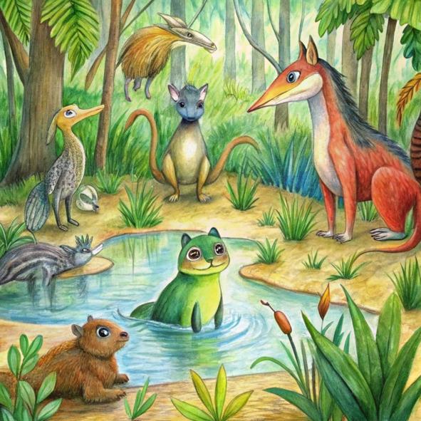 Изначально в волшебном лесу жили храбрый лев по имени Логан и мудрая лягушка по имени Делла. Делла, королева болот, была известна своим умом и грацией. Однажды Логан в шутку погнался за Деллой по болоту, утверждая, что он истинный король леса и топей. Когда они мчались сквозь высокие камыши и мерцающую воду, другие животные с благоговением наблюдали за ними. Пройдя через ряд испытаний и приключений, Логан и Делла обнаружили, что истинное лидерство проистекает из сострадания, понимания и единства. Вместе они показали, что даже самый свирепый лев и самая маленькая лягушка могут быть лучшими друзьями и правителями своих владений, доказав, что сила всегда измеряется не размером, а размером сердца.