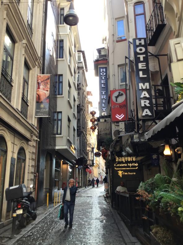 Сам того не понимая, автор оказался оказался в районе Перы. А Пера — это не Истикляль и не Таксим. Не Галата. Пера — совсем другой район! Тонный и буржуазный. За столиками кафе перед парадными отелей сидели немногочисленные пары явно элитарного вида. Тут такая публика (893)! Один из этих отелей принадлежал «Восточному экспрессу» и там живала сама Агата Кристи. Вроде бы в ее номере до сих пор можно остановиться.