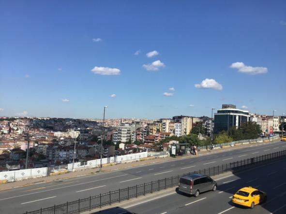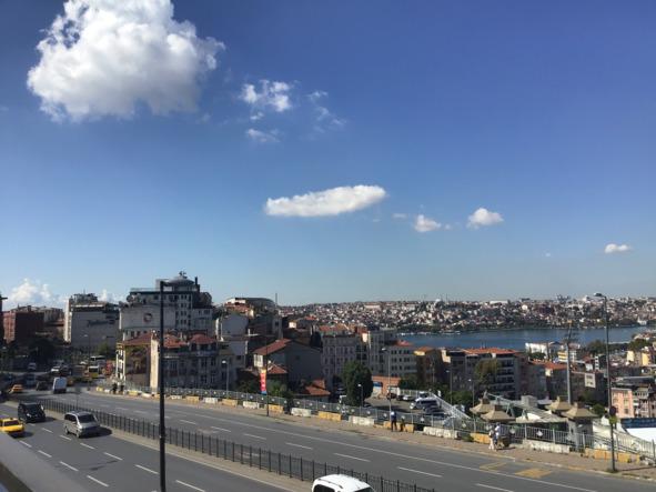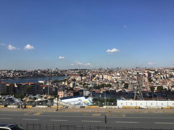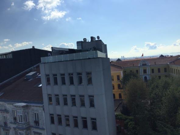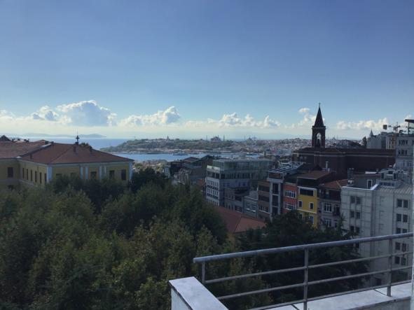 Наверху оказалась не совсем терраса — просто из верхнего этажа открывался замечательный вид на восточную часть района Бейоглы и Босфор. Тут была крыша.