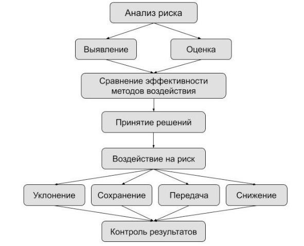 При возникновении любого из рисков необходимо принять решение и подкорректировать свои действия, чтобы проект не провалился. Управление рисками. Процесс выявления, оценки, минимизации, контроля рисков — это управление ими, так называемый, риск-менеджмент.