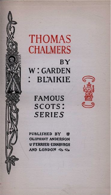 Title: Thomas Chalmers Author: W. Garden Blaikie Release Date: June 23, 2012 [EBook #40081] Language: English Character set encoding: UTF-8