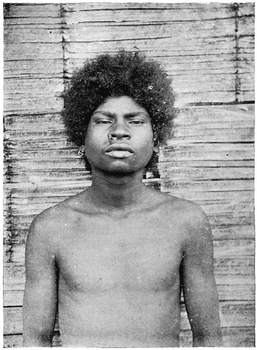 According to Mr. Bensley, “the Kādir has an air of calm dignity, which leads one to suppose that he had some reason for having a more exalted opinion of himself than that entertained for him by the outside world. A forest officer of a philanthropic turn had a very high opinion of the sturdy independence and blunt honesty of the Kādir, but he once came unexpectedly round a corner, to find two of them exploring the contents of his port-manteau, from which they had abstracted a pair of scissors, a comb, and a looking glass.” “The Kādirs,” Mr. (now Sir F. A.) Nicholson writes,13 “are, as a rule, rather short in stature, and deep-chested, like most mountaineers; and, like many true mountaineers, they rarely walk with a straight leg. Hence their thigh muscles are often abnormally developed at the expense of those of the calf. Hence, too, in part, their dislike to walking long distances on level ground, though their objection, mentioned by Colonel Douglas Hamilton, to carrying loads on the plains, is deeper-rooted than that arising from mere physical disability. This objection is mainly because they are rather a timid race, and never feel safe out of the forests. They have also affirmed that the low-country air is very trying to them.” As a matter of fact, they very rarely go down to the plains, even as far as the village of Ānaimalai, only fifteen miles distant from Mount Stuart. One woman, whom I saw, had been as far as Palghāt by railway from Coimbatore, and had returned very much up-to-date in the matter of jewelry and the latest barbarity in imported piece-good body-cloth.
