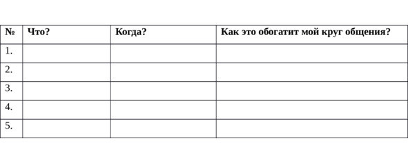 Продумайте пять конкретных действий (куда поехать, в чем участвовать), которые могли бы обогатить ваш личный круг общения содержательными людьми, нацеленными на изменения.