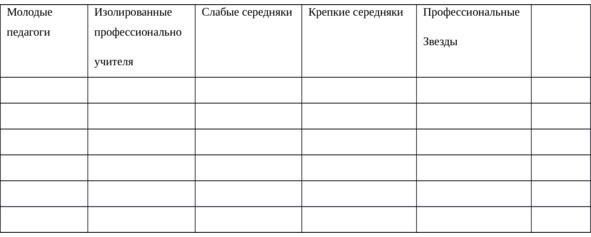 Чтобы было проще, сначала распределите всех сотрудников по предложенным группам10. Если вы считаете, что какие-то педагоги не подходят ни под одну из предложенных категорий, впишите их в правую колонку.
