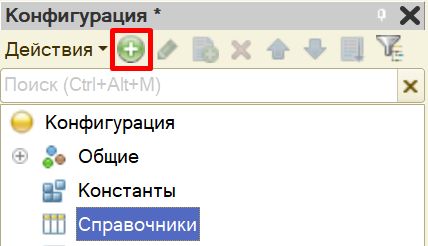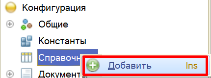 Существует несколько способов добавления/создания нового объекта конфигурации. Рассмотрим на примере добавления нового справочника.