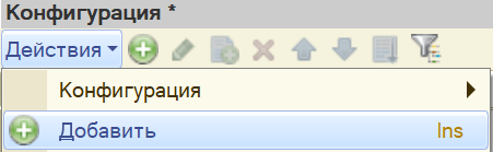 4. Щелкните по нужному объекту конфигурации левой кнопкой мыши и нажмите «Действия» ? «Добавить».