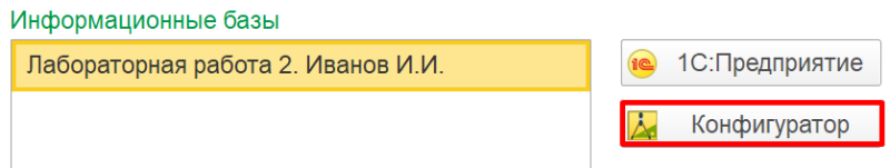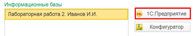 Любая информационная база может быть запущена в двух режимах: «1С:Предприятие» и «Конфигуратор».