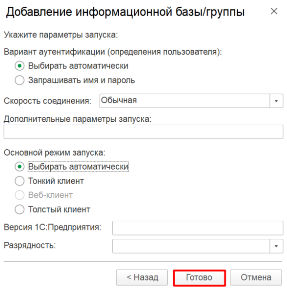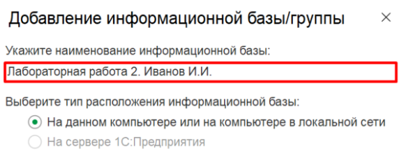 Дайте имя вашей информационной базе и нажмите кнопку «Далее».
