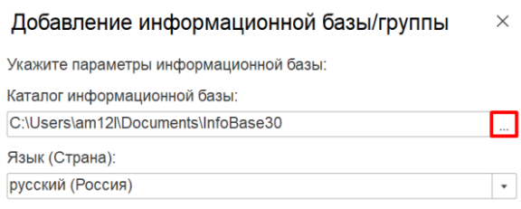 При необходимости можно изменить каталог для установки информационной базы. Нажмите на кнопку «Далее».