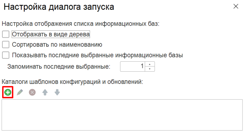 Откроем настройку окна запуска системы. Для этого нажмите на кнопку «Настройка». В открывшемся окне добавьте удобный для вас путь к каталогу шаблонов.