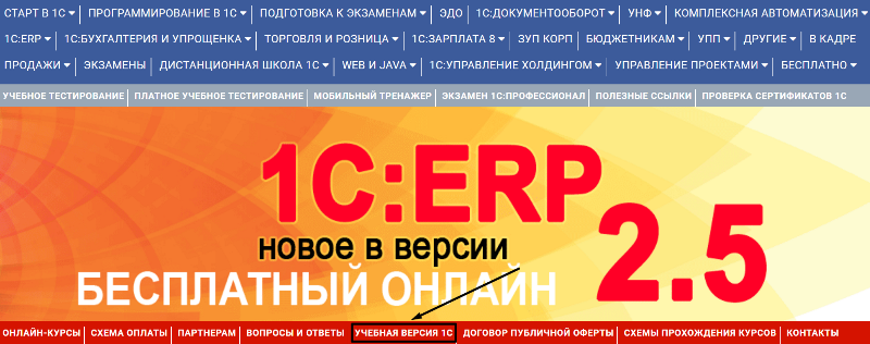 Откроем браузер и перейдем на сайт Учебного центра № 1 фирмы «1С»: https://uc1.1c.ru. Найдем кнопку «Учебная версия 1С».