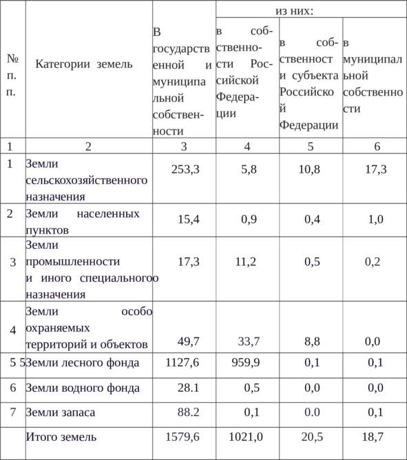 Таблица 2 Сведения о наличии земель государственной и муниципальной собственности и разграничении их на собственность РФ, субъекта РФ и муниципальную собственность (млн. га)