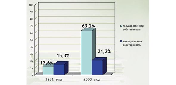В последние десятилетия большинству городов капиталистических стран, особенно в Европе, пришлось решать острые вопросы жизнеобеспечения, связанные с ростом урбанизации, в условиях жесточайшего дефицита свободных муниципальных земель. Поскольку бюджетные расходы для выкупа и изъятия земельных участков из частной собственности стали угрожающе расти, муниципалитеты стали прекращать практику полного отчуждения своих земель. Существенно возросла и доля земель муниципальной собственности (рис. 2). Так, до начала мирового экономического кризиса, например, в Вашингтоне — уже только 25% территории города было в частной собственности, а в Швейцарии приватизировали лишь 18% городских земель [61,63]. В Хельсинки более 60% городской территории находится в муниципальной собственности. Если в 1981 году в государственной собственности в таких странах как Германия, Франция, Италия, находилось 12,6% городских земель, то уже к 2003 году эта цифра возросла до 63,2%, то есть более чем в пять раз.